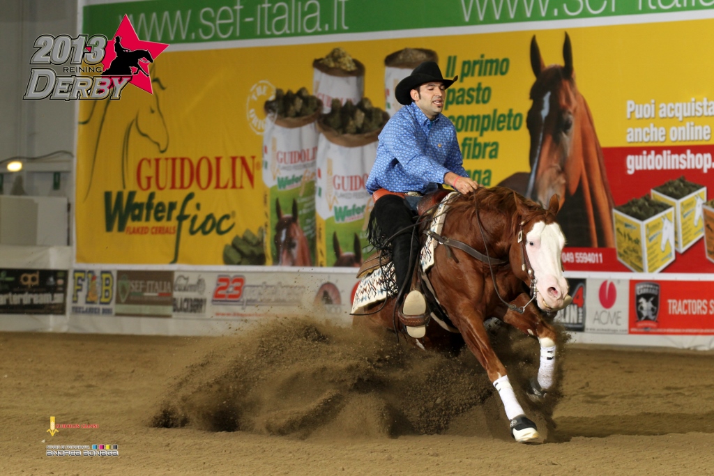 Con mezzo punto in meno è Reserve Champion Derby Open Level 4, l’Nrha Million Dollar Rider Bernard Fonck, che ha montato il cavallo di Rosanne Sternberg, Ebony Spook (Smart Spook x Ebony Whiz).
