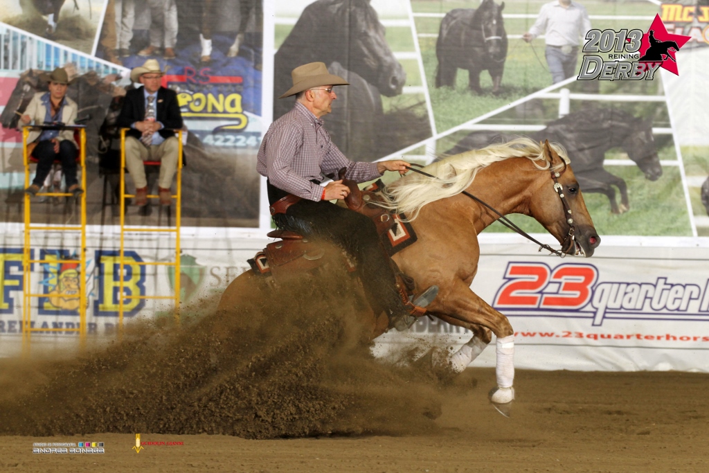 Con mezzo punto in meno è Reserve Champion Derby Open Level 4, l’Nrha Million Dollar Rider Bernard Fonck, che ha montato il cavallo di Rosanne Sternberg, Ebony Spook (Smart Spook x Ebony Whiz).