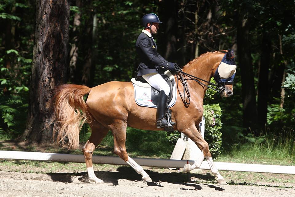 Inno anche nel grado 5, con Alessio Corradini (istruttore Piero Sangiorgi) e Levinia 10 (68,254%). Alle sue spalle, Estelle Guillet (per la Svizzera su Magic Des Meuyrttes, 65.913%) e Alfonsina Maldonado (per l’Uruguay in sella a World Champion, 64.960%).